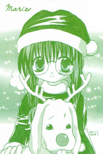 G'sマガジン2002年2月号のギャルゲーマー内にてコメント付掲載されたモノ。 『トナカイのコスプレをするミカエルが微笑ましい〜! ドングリのような鞠絵ちゃんの瞳に見つめられて、心はもう春の暖かさv なのデス。』 最初はカラーの予定だったんですが、失敗しモノクロになりました。 念願モノクロ掲載、しかもコメント付ちょっと大きめ掲載、 しかもしかも没ったと思ってたモノだった為ビックリ!不意打ちって怖い!! どうやら〆切に間に合わなかっただけのようです(笑)。