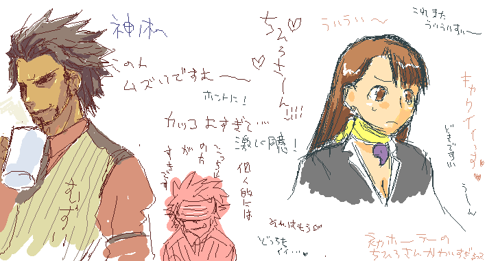 ゴドー、哀牙、アルフォンス、春美:ムーチ様 成歩堂、真宵、亜内:もへ