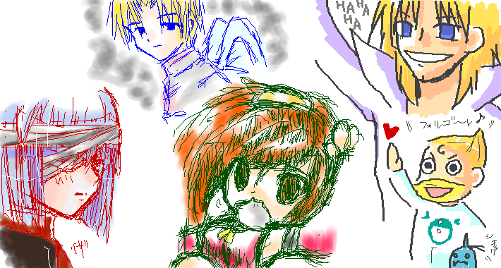 イザーク:あゆら様 上級天使:クッキーぽん様 紗夢:なると様 フォルゴレ、キャンチョメ、アルフォンス:もへ 未だかつて無いほどのバラバラ合作(笑)。皆、描きたいモノを描きました★ 私1人明らかに浮いてますね、でへっ。自分的にガッシュがキてる時期でした♪