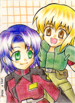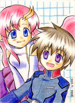 学祭で売るラミカ用に描きました! 色鉛筆にコピック0番乱用。あ〜…色塗は楽しいなぁ。 メインターゲットが女子中学生なんですが何描くか毎年悩むんです。 しかし今年は迷う事無くSEED♪珍しく流行りモノにハマったもんねー♪ キャラ選択は売上を考慮しつつ自分の趣味を大切にしつつ王道カプv 私的にキララクの方が可愛く描けたと思うんですけど そんな事は無視してアスカガの方が若干売れてた(笑)。